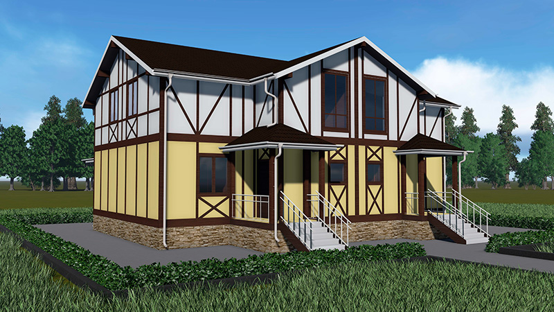 Наружная отделка —декоративная штукатурка, облицовочная рейка в местах стыка