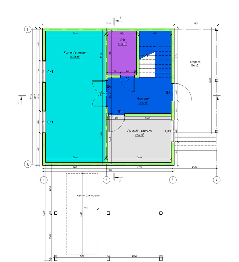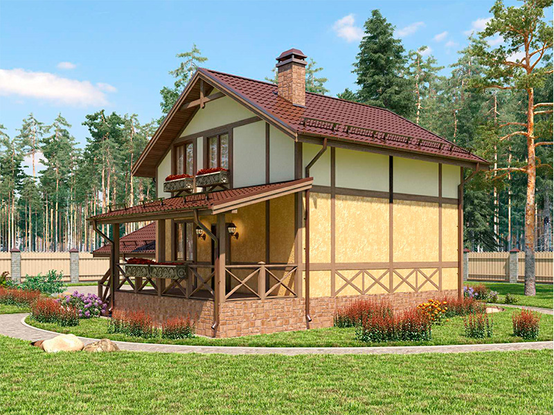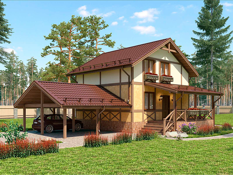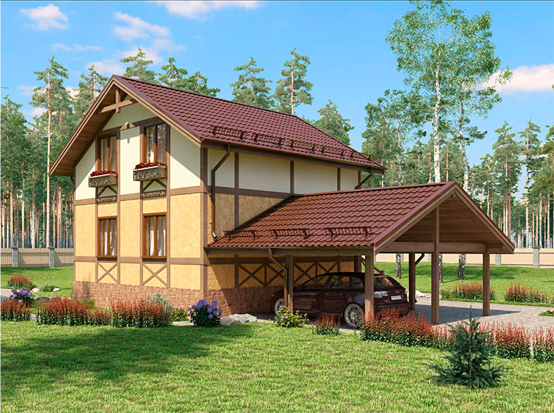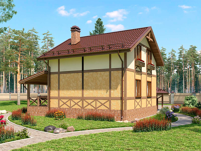 Наружная отделка — штукатурка, доски "под фахверк"