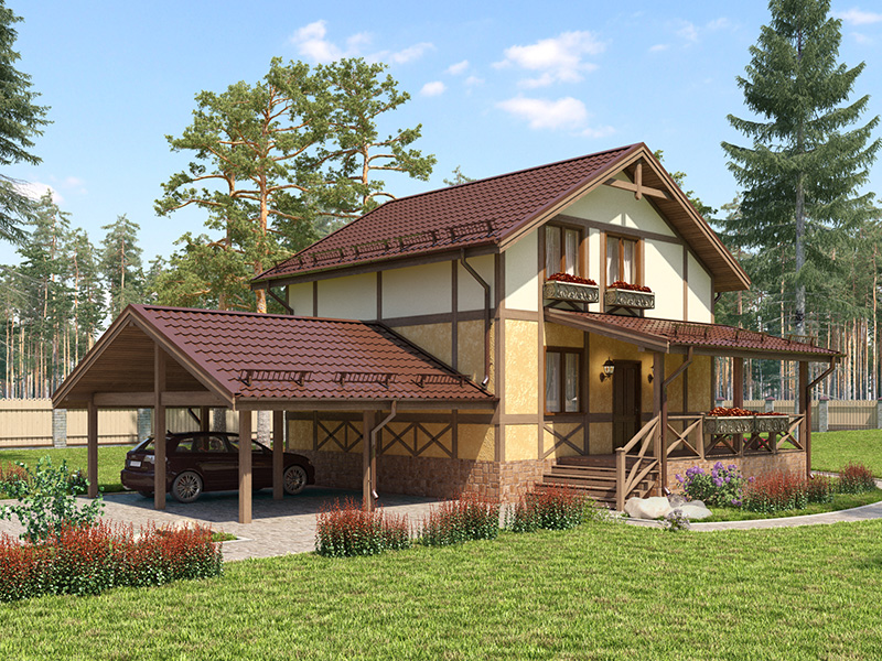 Панчо– это функциональное и удобное жилище. Дом для небольшой семьи с навесом для гаража.