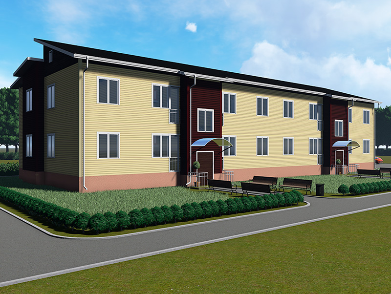 Проект многоквартирного двухэтажного дома. 1 этаж - 6 однокомнатных квартир s=32 кв.м, 2 двухкомнатные квартиры-45 кв.м 2 этаж- 6 однокомнатных квартир s=32 кв.м, 2 двухкомнатные квартиры-45 кв.м